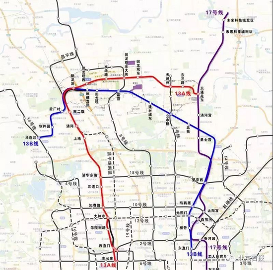 项目概况:项目在原13号线西二旗站至回龙观站之间进行拆分,新建29公里线路并改造利用原13号线34.4公里线路,改造回龙观车辆基地,增购53列车辆,使原13号线形成两条“L”型的交叉线路(13A线和13B线)。