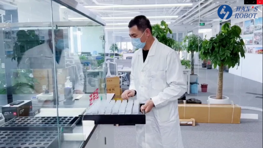 将进样盘推入智能化自动检测实验台后,所有检测工作将全部由机器人负责完成。