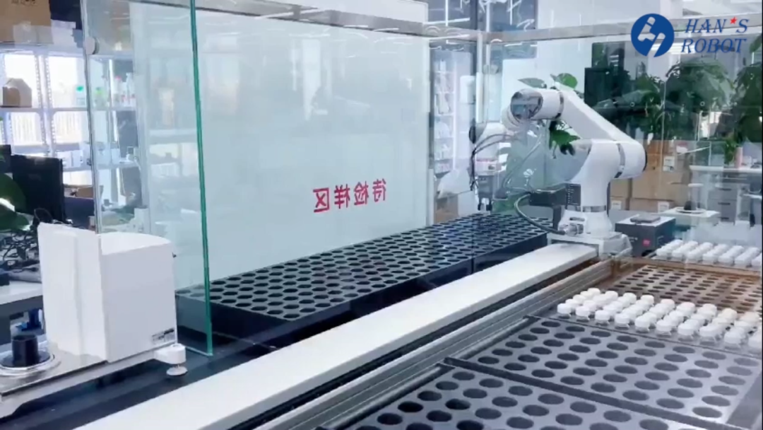 自动检测仪器完成一个样本的检测周期是5-10分;机器人会利用这个时间将进样盘内的样本瓶移动到待检样盘中,在这里排队等候检测。