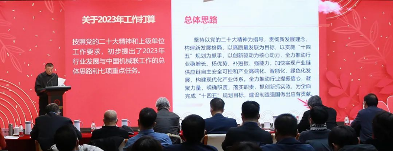 关于2023年工作,徐念沙会长强调,2023年是贯彻落实党的二十大精神的开局之年,也是实施行业“十四五”规划、深入推进转型升级、加快实现高质量发展的关键之年。按照党的二十大精神和上级单位工作要求,代表领导班子提出了总体思路:坚持以党的二十大精神为指导,贯彻新发展理念、构建新发展格局,以高质量发展为目标,以实施“十四五”规划为抓手,以创新驱动为核心动力,全力推动行业稳增长、扬优势、补短板、强能力,加快实现产业链供应链自主安全可控和产业高端化、智能化、绿色化发展,构建现代化产业体系。全力推动行业提振信心,凝聚力量,明确职责,落实职责,抓创新抓实效,为全面完成“十四五”规划目标,建设制造强国做出应有贡献。