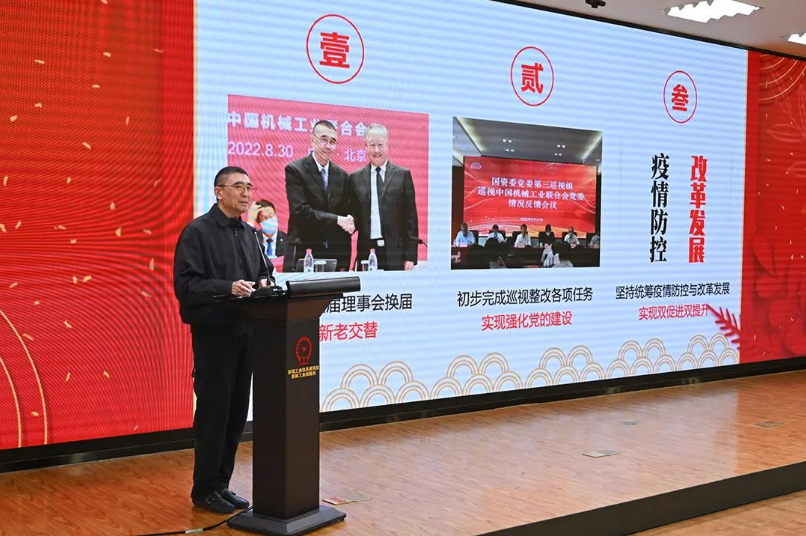 机械工业在党的方针政策指引下,坚持以高质量发展为目标,攻坚克难、稳中求进,自主创新、提质升级,保持了平稳健康发展。中国机械联在上级党组织领导下,团结会员、带领系统,坚持发挥优势做好“四个服务”,坚持党建引领、统筹疫情防控和改革发展,取得了业务创新与经济收益超过年度预算目标的良好成绩。完成了理事会换届,实现了新老交替;初步完成了巡视整改各项任务,实现了强化党的建设;坚持统筹疫情防控与改革发展,实现了双促进双提升。强调成绩的取得实属不易,这是全会上下同心、砥砺前行、拼搏奋斗的结晶,充分彰显了联合会的精神底蕴和素质能力。他代表领导班子向全体员工致以诚挚的问候和衷心的感谢!
