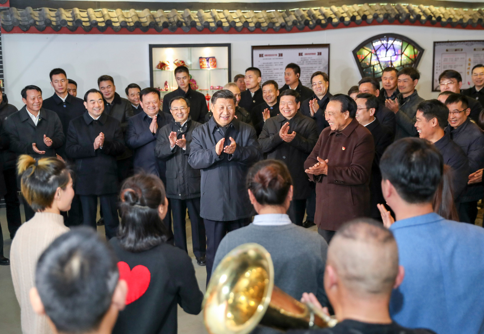 马庄村的村民乐团远近闻名。习近平走进村文化礼堂,饶有兴致观看了他们为宣讲十九大精神排练的一段快板。习近平说,加强精神文明建设在这里看到了实实在在的落实和弘扬。实施乡村振兴战略不能光看农民口袋里票子有多少,更要看农民精神风貌怎么样。