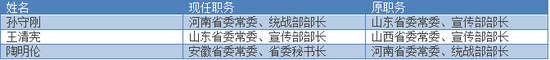 不知道大家看出来没有,政知见给大家拎一下这条线,河南省委原常委、统战部部长陶明伦调到安徽任职,空出的职位由山东省委原常委、宣传部部长孙守刚接任,孙守刚空出的职位由山西省委原常委、宣传部部长王清宪接任。