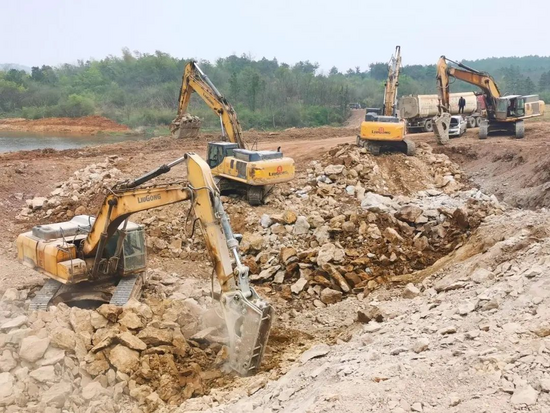 “柳工挖掘机现在参与的这个工程项目是农田改造,这个地方不能放炮,只能用挖机硬打,对挖机的性能要求还是蛮高的。”曹老板表示,由于工期有限,需要挖掘机干活效率更高,因此在小小的作业面上,曹总聚集了5台柳工挖掘机在这里施工。