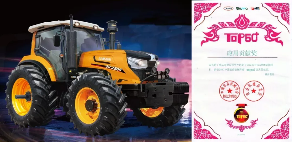 萨丁“金领版”猛士SD2204作为萨丁重工专门针对旱田区域大地块开发的大马力车型,凭借出色的产品表现力和用户满意度,荣获中国农业机械年度“TOP50+”产品应用贡献奖。产品采用家族式硬朗外观,摩尔加强型底盘,核心零部件选用国际知名品牌,为用户带来更高效、更可靠的作业体验。