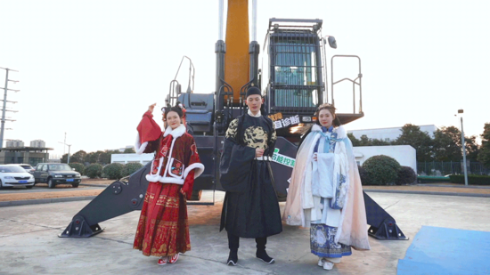 直播在一场华丽惊艳的汉服走秀中拉开帷幕。七位身着汉服的模特,穿越于挖机森林中,灿若星河的东方霓裳与钢铁丛林相互映照,每一帧都是绝美的画面。大国重器邂逅国潮风,崭新徐工硬核破圈,短短几分钟,直播就吸引了近5万人次观看。