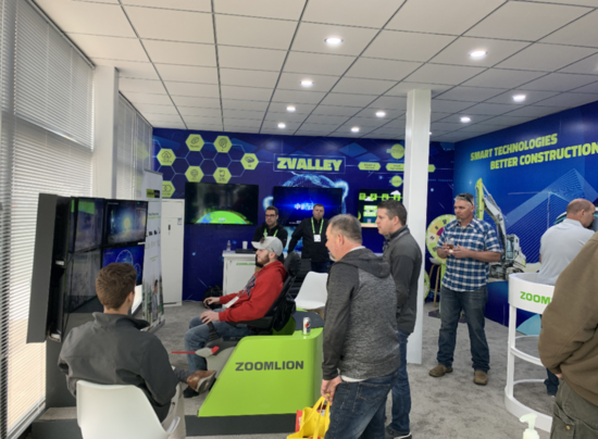 ▲2020美国展上,现场观众体验中联重科5G远程操作位于长沙的挖掘机