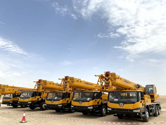 参与建设的徐工近百台系列产品中,平地机主要负责施工便道推沙平整作业,压路机进行施工便道压实,起重机、混凝土搅拌车、伸缩臂叉装机等诸多“满勤”设备通力配合,表现抢眼。徐工成套化解决方案的独特优势和“技术领先、用不毁”的硬核性能,备受项目团队的一致好评。