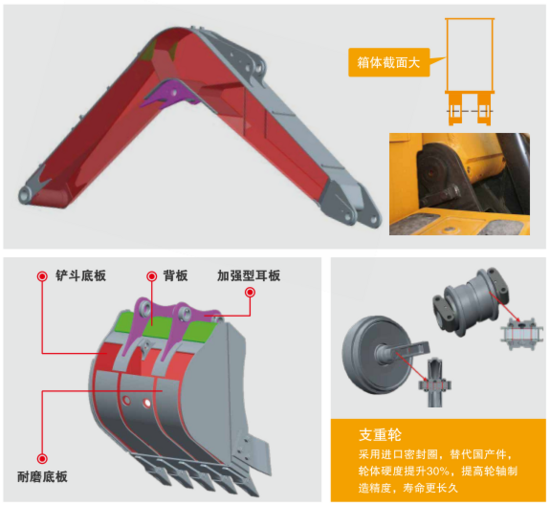 动臂、斗杆,铲斗、下车,加强型结构件经久耐用