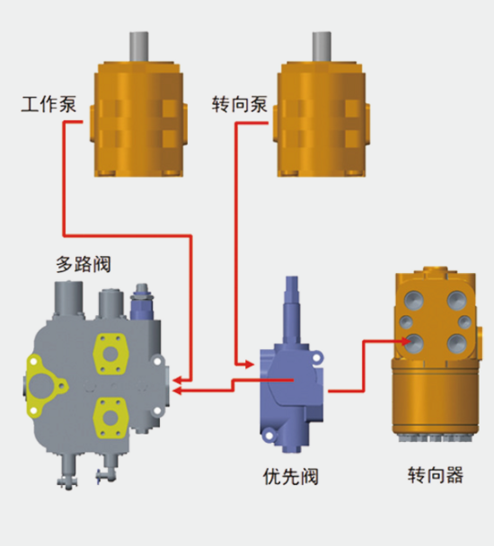 使用双泵合流液压系统,三项和时间短,能量损失小,优化转向更轻便,效率更高。