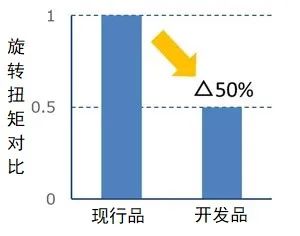 本产品优化了滚道圈的内部设计,由于采用了陶瓷制滚动体,旋转扭矩比现行品减少了50%※。