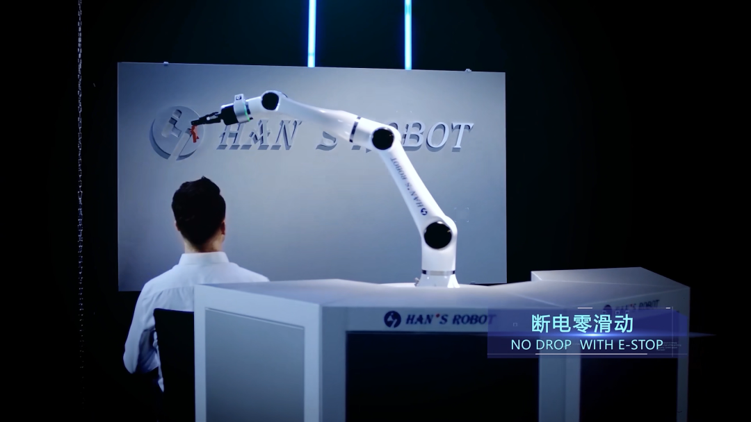 同时,大族协作机器人创新的抱闸方式令机器人在运行时遇到突发断电或者急停时直接抱死不下坠,这从根本上保证了使用时的绝对安全性。