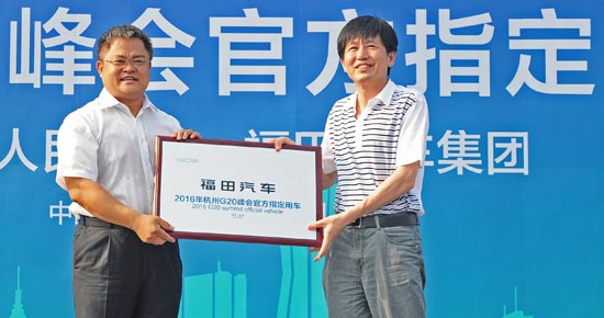 2015年福田汽车曾获外交部“外事用车支持赞助单位”荣誉铭牌,本次G20杭州峰会获官方指定用车。