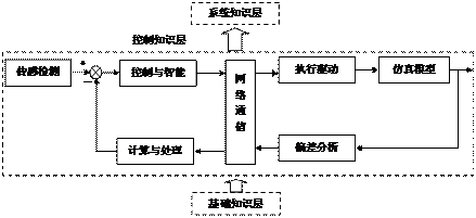 自动化专业控制类理论课程群按层次划分可分为知识层、知识领域、知识单元,其中知识层又细分为基础知识层、控制知识层和系统知识层。基础知识层主要包含基础知识领域,比如数学、物理、电路知识单元;系统知识层主要包含系统与工程知识领域。知识领域包含的知识领域较多,如传感检测、网络传输、计算处理、智能控制、执行驱动、仿真模型、系统工程等,其中反映自动化学科核心特点的主要是智能控制、仿真模型、系统工程三个知识领域,其中各层次之间的包含关系如图1所示。