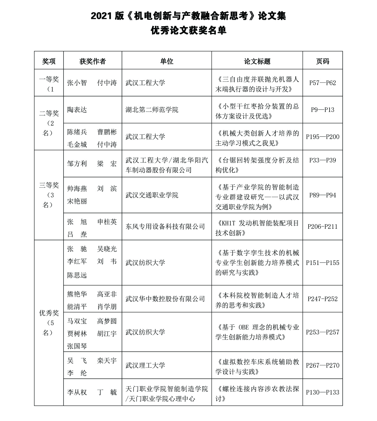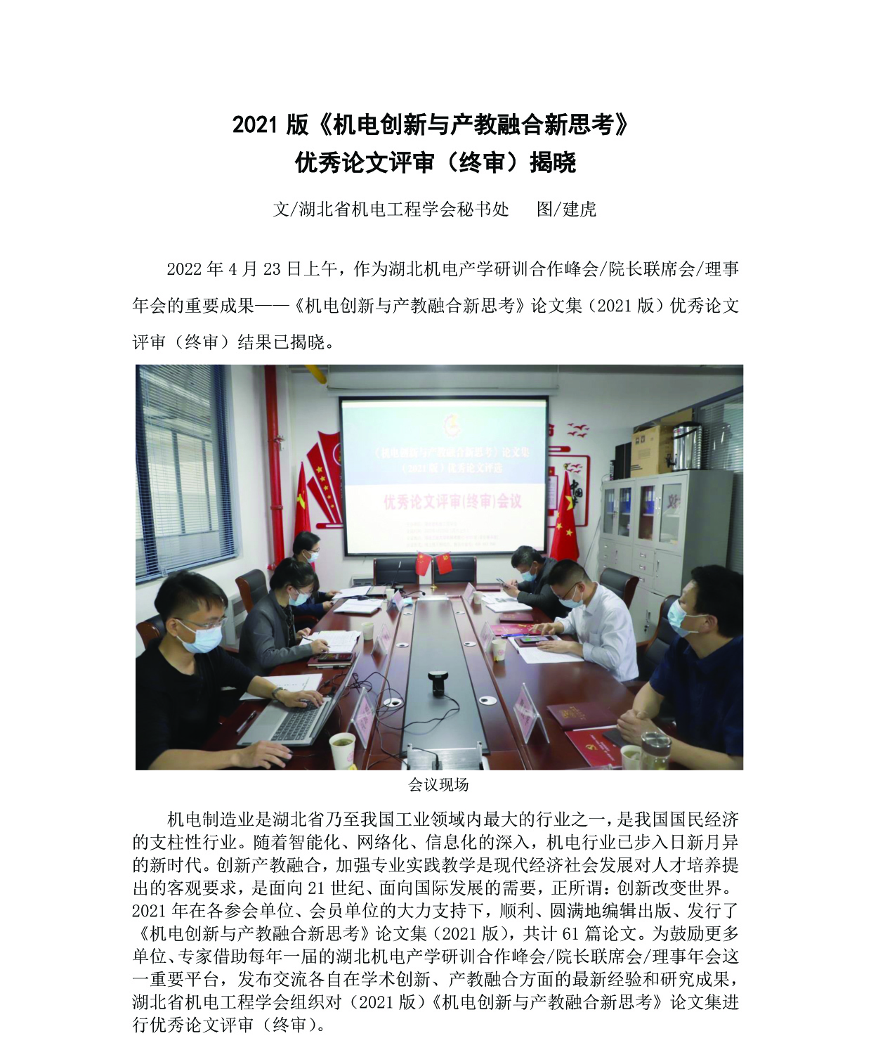 2021版《机电创新与产教融合新思考》 优秀论文评审(终审)揭晓