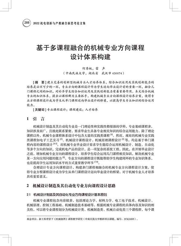 (25)基于多课程融合的机械专业方向课程设计体系构建