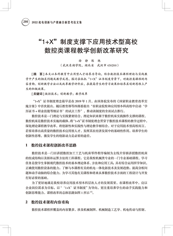 (23)1+X制度支撑下应用技术型高校数控类课程教学创新改革研究