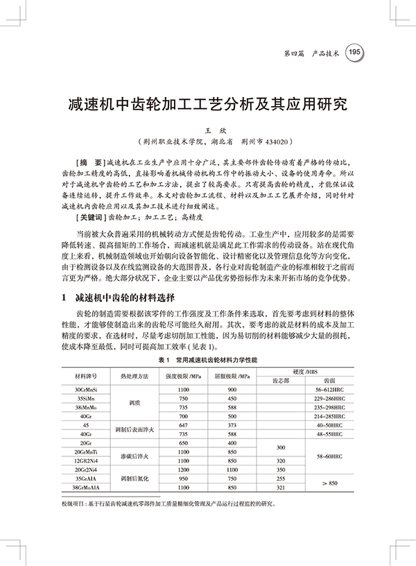 (17)减速机中齿轮加工工艺分析及其应用研究